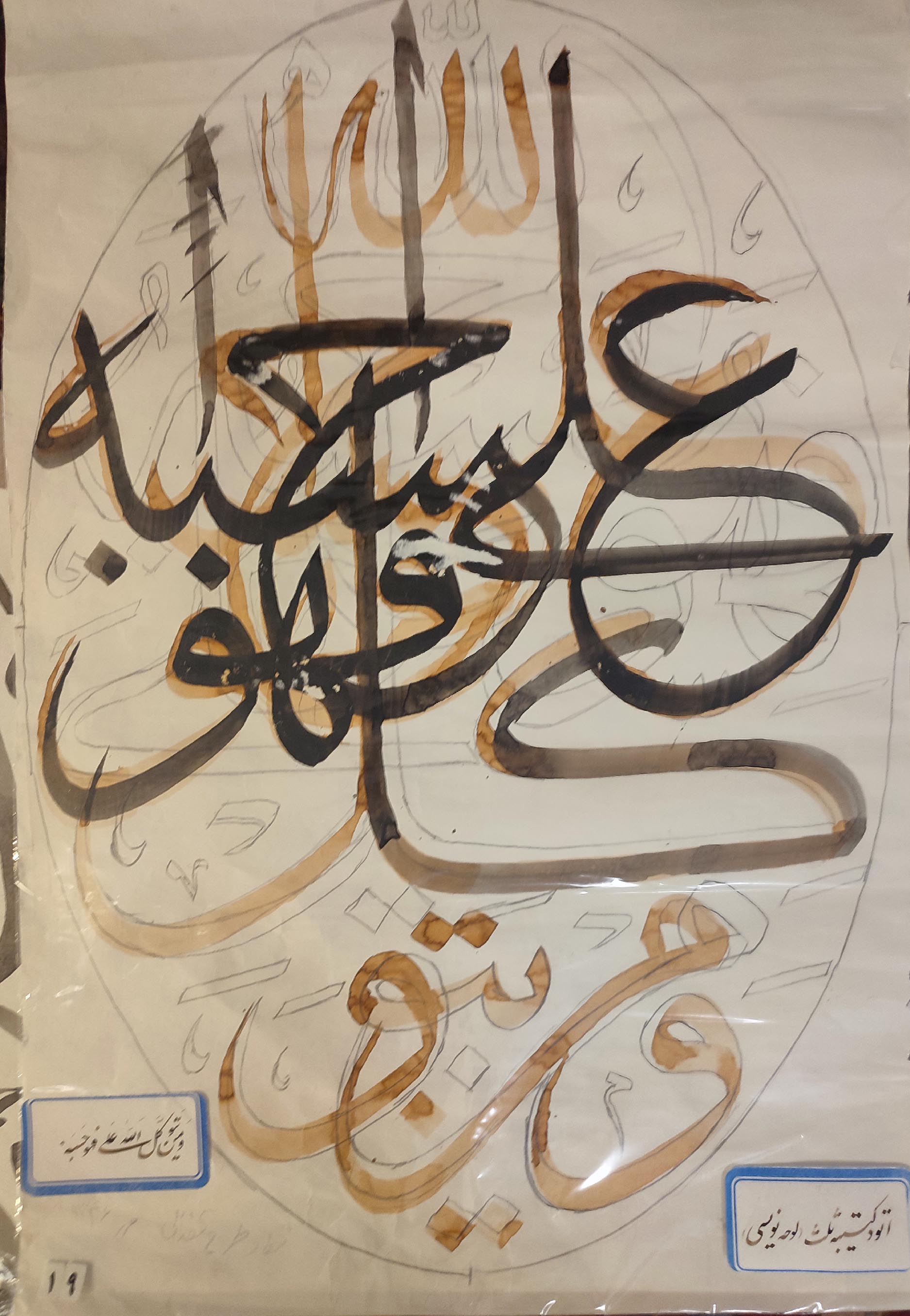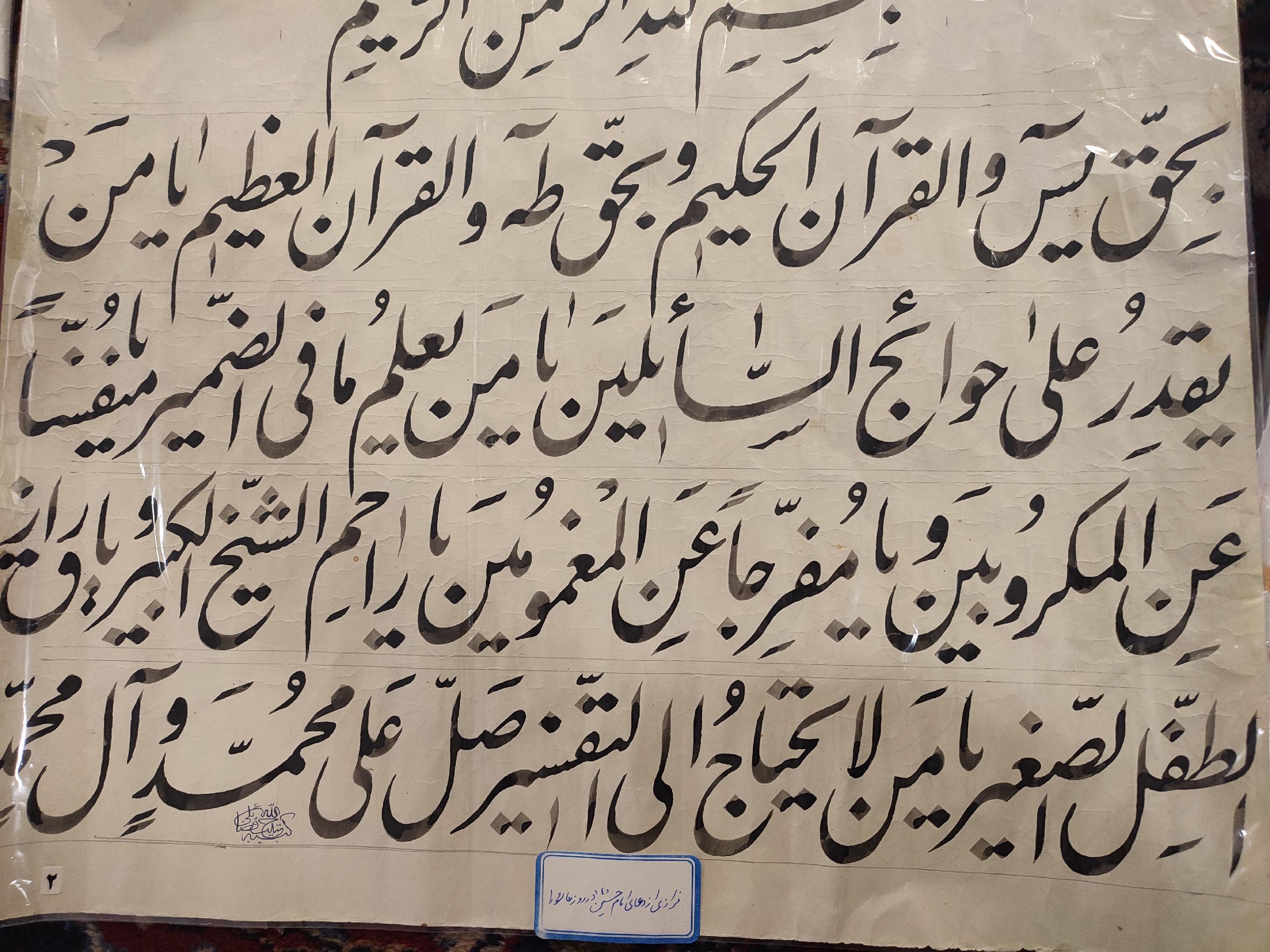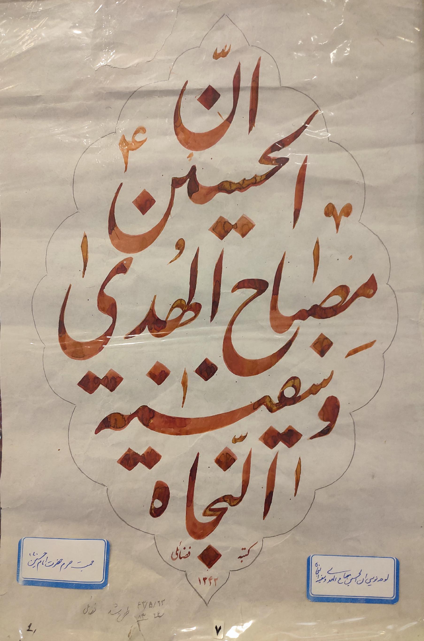 نوشتن کتیبههای مختلف در عتبات و سوریه و برخی مساجد و حسینههای اصفهان، شیراز، اهواز و تهران.