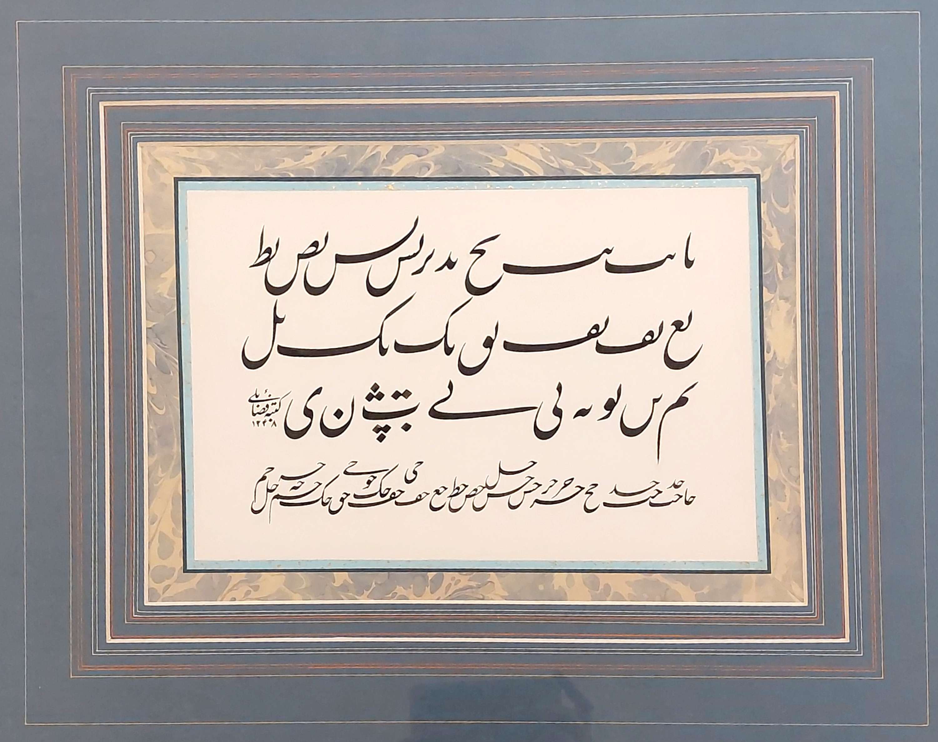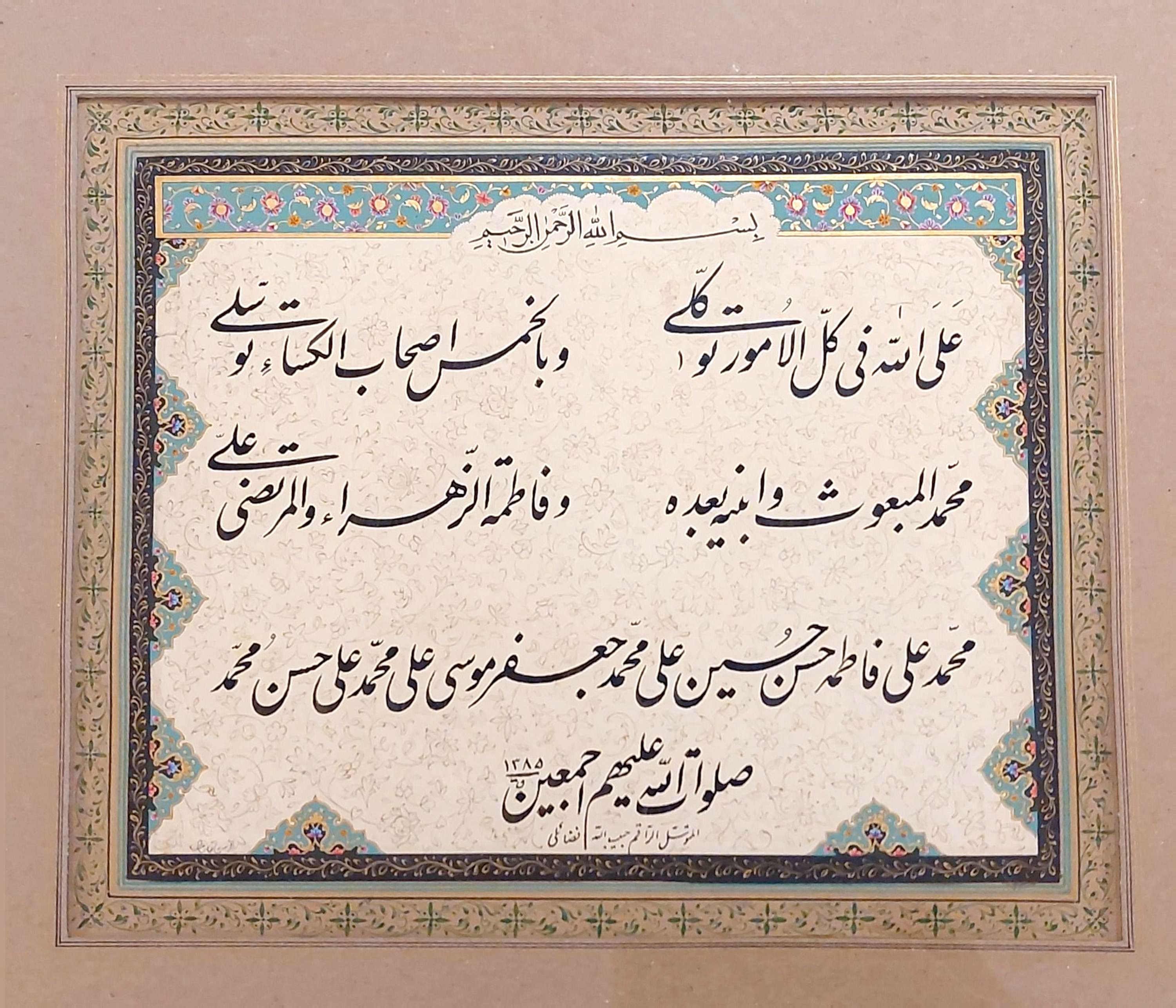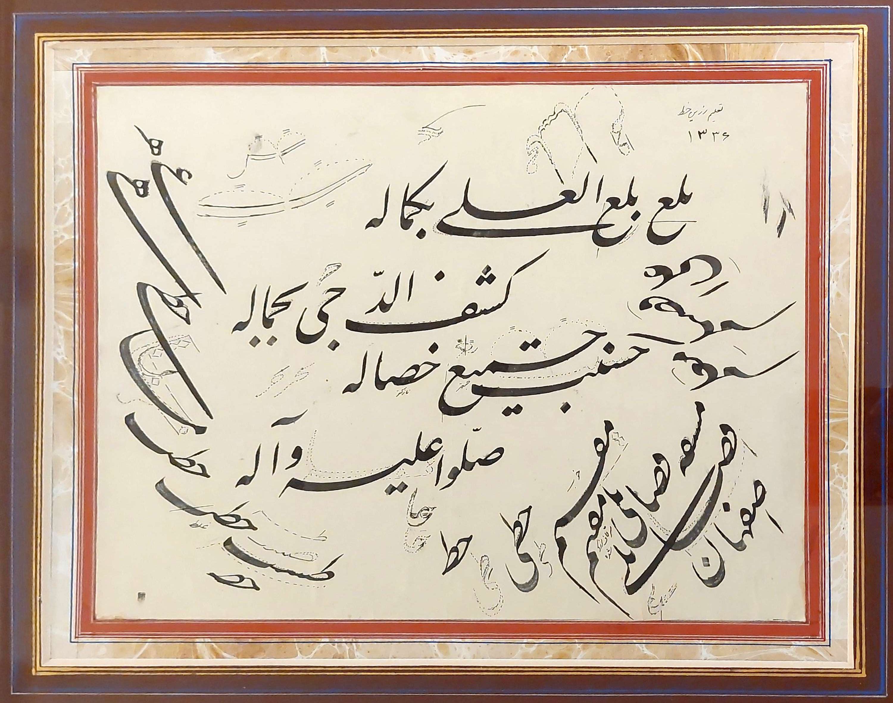 نوشتن کتیبههای مختلف در عتبات و سوریه و برخی مساجد و حسینههای اصفهان، شیراز، اهواز و تهران.