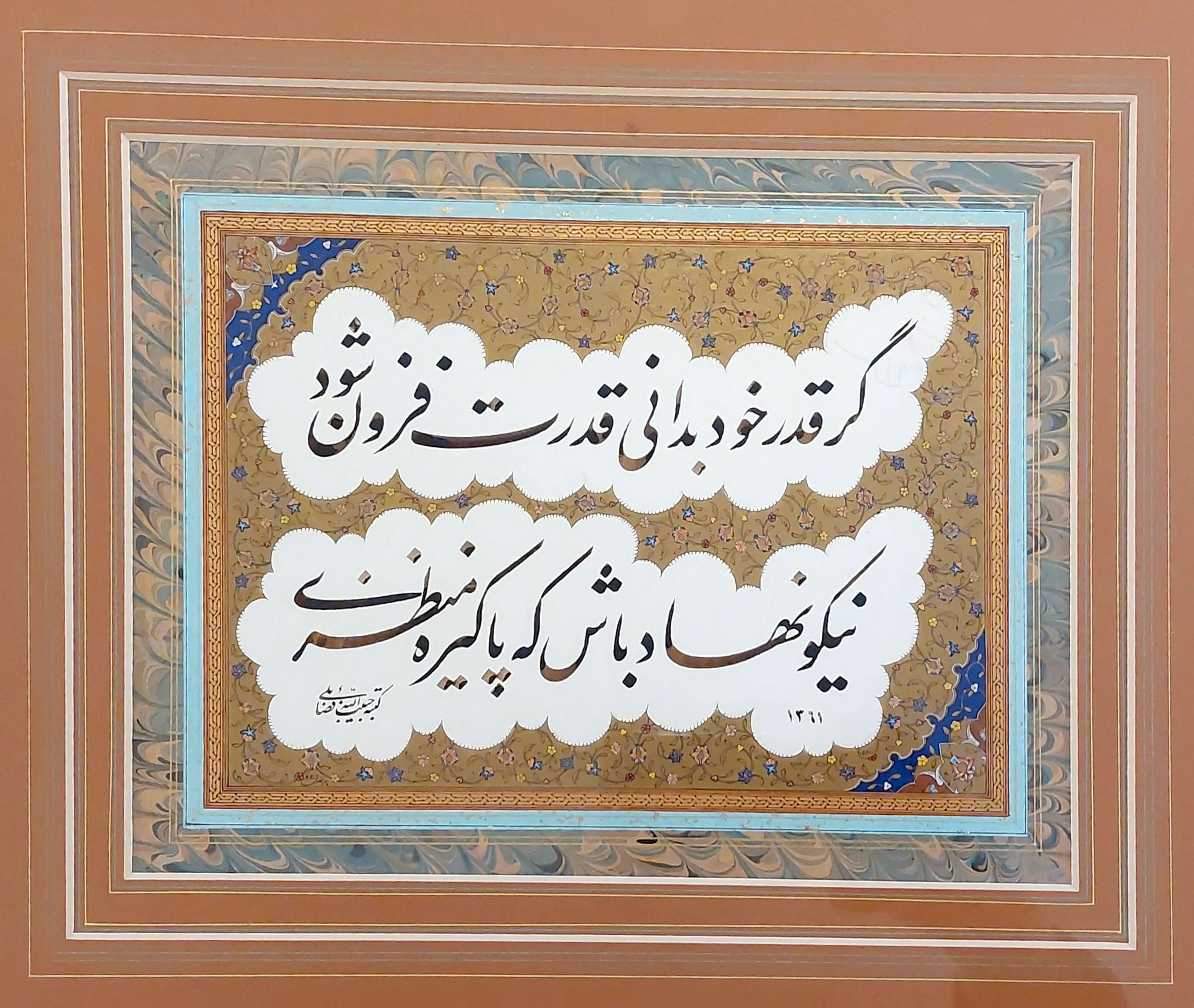 کتاب «بوستان هنر خط» که مجموعهای نفیس از انواع خطوط اسلامی به خط حبیبالله فضائلی است.